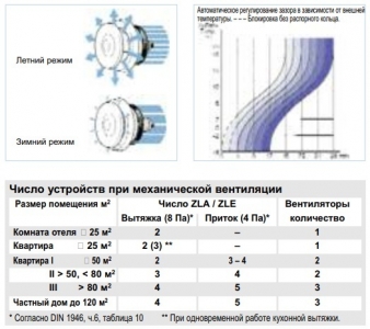 Необходимое число устройств определяется согласно нормам DIN 1946, ч.6 в зависимости от величины помещения и силы ветра (см. таблицу справа).